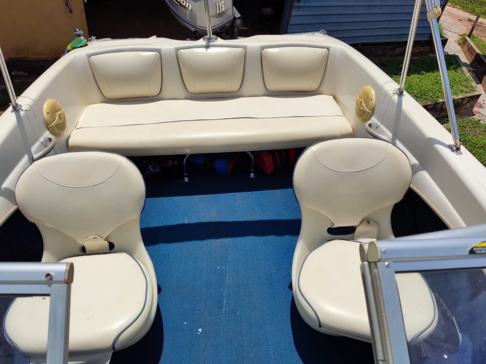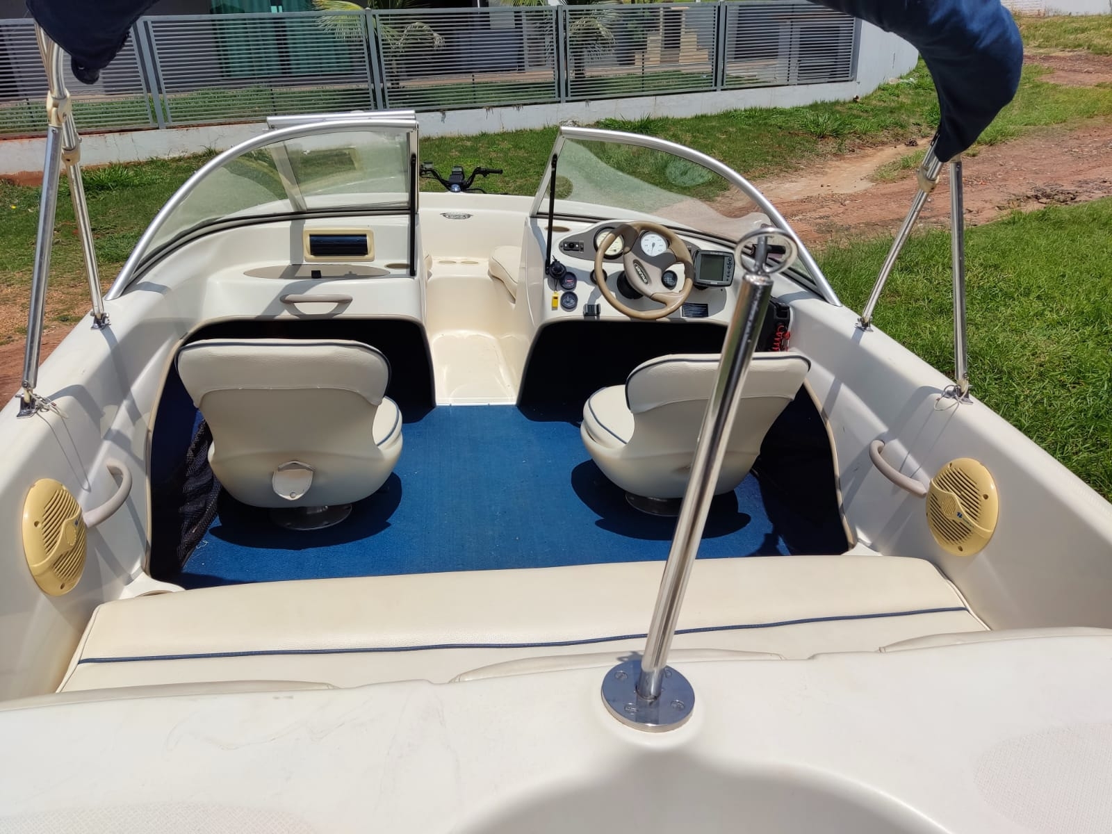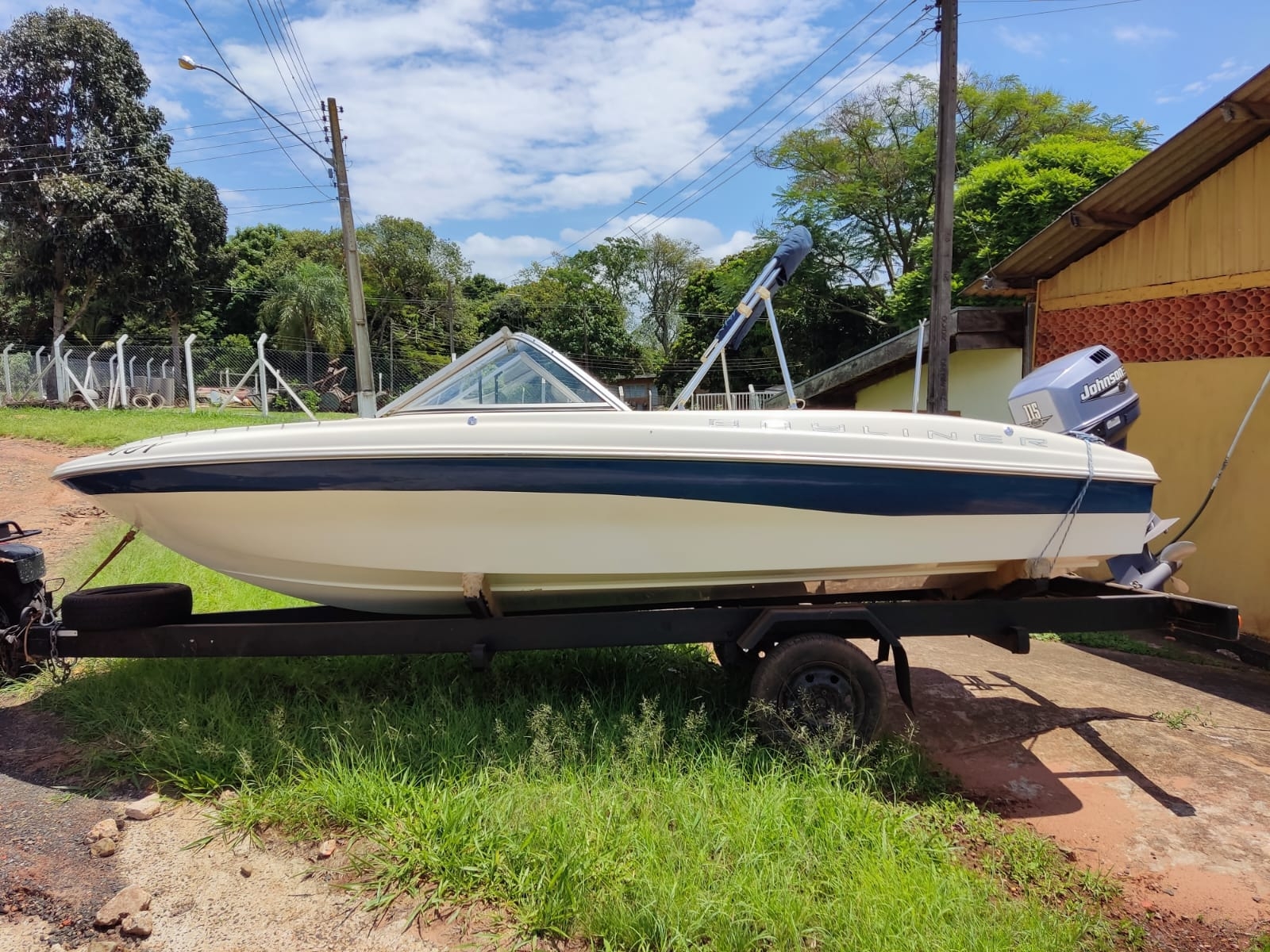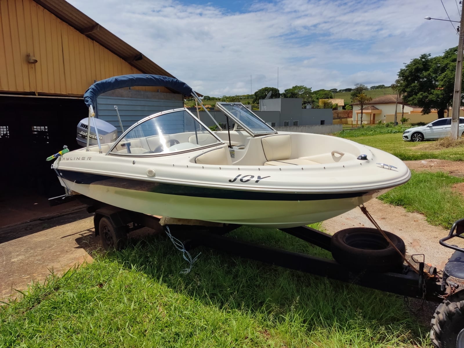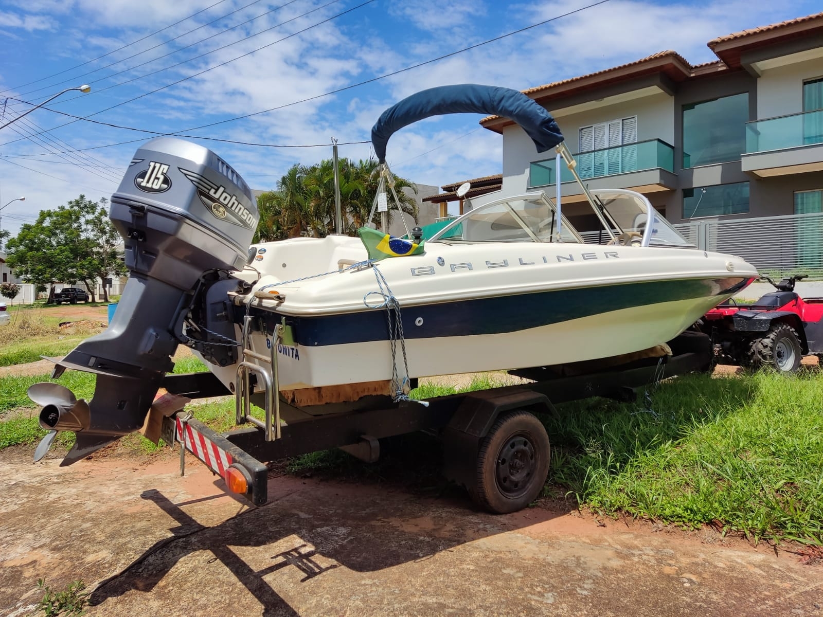 Lancha Bayliner 16 Ano: 2001 Motor: Jhonsom 115hp 2T Capacidade: 1+5 Hora: 281de uso Valor R$ 70mil Somente água doce Acessório: Bateria 60hp (nova) Som pioneer (novo) Bomba de porão Lona sol e chuva (nova) Carreta Encalhe Buzina Capota Luz de navegação Luz de Alcançado Escada na popa Sonar