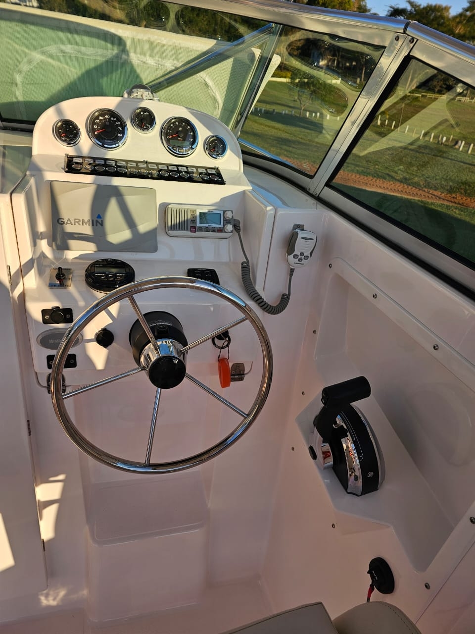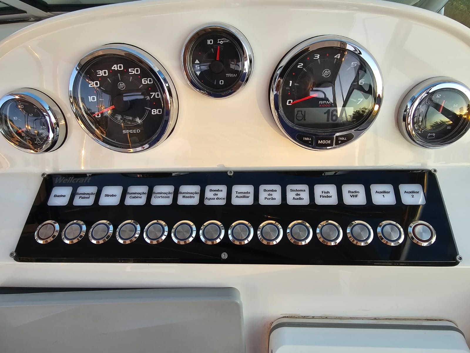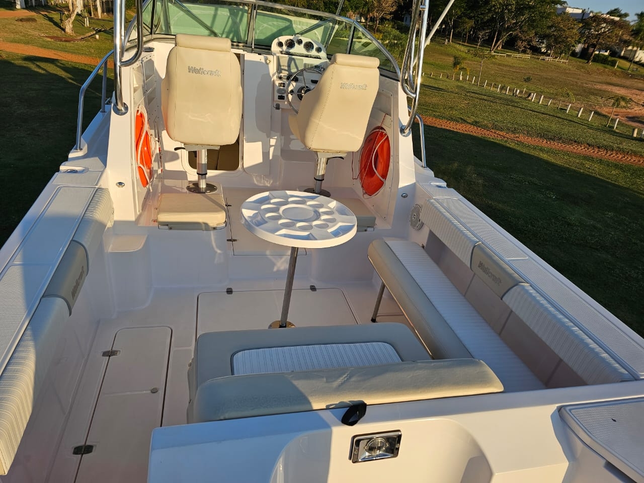 Lancha Wellcraft 27 Ano: 2020 Motor mercury 300hp 4 tempos Hora: 150 horas Capacidade: 1+9 = 10 Valor R$ 430.000 Único dono Somente água doce Acessórios: Som Gps Rádio VHF Lona Sol e chuva timoneiro Cabine Banheiro Motor de âncora Âncora Bateria Targa fixa Direção hidráulica Flap hidraulico Mesa de centro